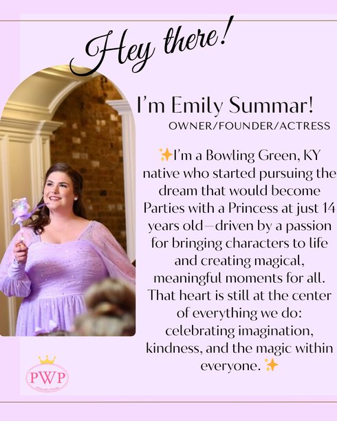 Established in 2012 in the heart of Bowling Green, Kentucky, "Parties with a Princess" was founded with a big dream- to bring magic, joy, and connection to the Southern Kentucky communities. What began as a passion project by a 14 year old aspiring actress has grown into a thriving local business consisting of a dedicated team of young women who believe in the power of imagination and inner beauty.